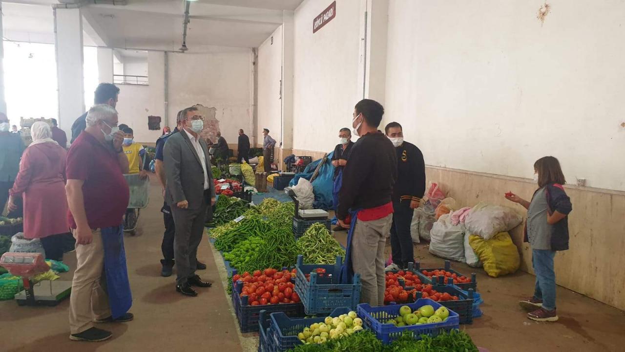 Müşterilerin meyve sebzelere dokunmaması, esnafın vermesi gerektiğini belirten Polat, vatandaşın da esnafın da Kovid-19 aşısı yaptırması gerektiğini vurguladı.