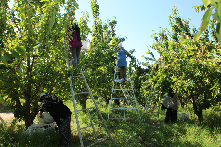 Eker, bahçede elma, şeftali, nektarin ve armudun da bulunduğunu, kirazdan sonra şeftali hasadının başlayacağını kaydetti.
