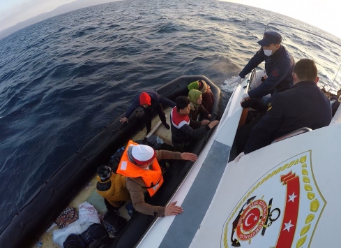 Bulundukları bölgeden kurtarılan göçmenler, daha sonra Küçükkuyu'daki Sahil Güvenlik Karakol Komutanlığına götürüldü.