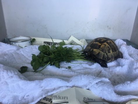 Kent merkezinde bir kişi tarafından zifte batmış halde bulunan kaplumbağa, Çankırı Belediyesi Sokak Hayvanları Rehabilitasyon Merkezi'ne getirildi. Burada yapılan muayenede, kaplumbağanın solunum yetersizliği olduğu ve hareket kabiliyetinin azaldığı tespit edildi. Veteriner hekimin uzun süren çalışması sonucu ziftten temizlenen kaplumbağa, merkezde gözlem altına alındı.