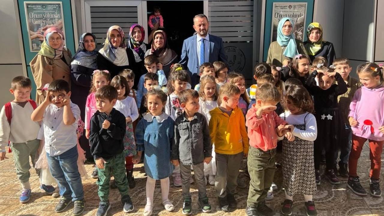 İlçe Müftülüğüne bağlı 4-6 yaş Kur'an kurslarında eğitim gören öğrenciler, Gazze için yardım kampanyası düzenledi.