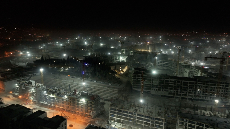 Azerbaycan Mahallesi’nde görevli TOKİ Harita Mühendisi Tufan Gümüş, bölgenin her yerinde çalışmaların yoğun şekilde devam ettiğini ifade etti: Çalışmalarımız güneşin batmasıyla da devam ediyor. Yaklaşık 1.400 işçi arkadaşımızla beraber gece gündüz demeden konutları yetiştirebilmek, vatandaşlarımızı yuvalarına oturtabilmek için çalışmalarımızı devam ettiriyoruz. Tek amacımız vatandaşlarımızı hızlı bir şekilde evlerine kavuşturabilmek. Bazen şartlarımız zorlaşsa da 7/24 yaz kış demeden devam ediyoruz.