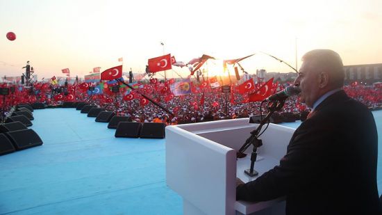 Yıldırım, Cumhurbaşkanlığı himayesinde, İstanbul Valiliği ve Büyükşehir Belediyesi desteğiyle Yenikapı Miting Alanı'nda düzenlenen Demokrasi ve Şehitler Mitingi'nde konuştu.