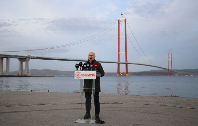 1915 Çanakkale Köprüsü Lapseki Şantiye Alanı'nda gazetecilere açıklamada bulunan Karaismailoğlu, bakanlığının hayata geçirdiği tüm projelerin Türkiye'nin geleceğinde büyük pay sahibi olmasının gururunu taşıdığını söyledi.