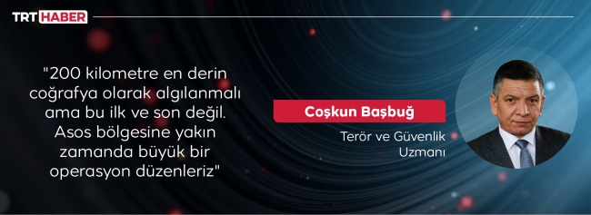 “Asos bölgesi ilgili makamların üzerinde durduğu bölgeydi. PKK'nın sözde lider kadrosunun kaçmak istediği bölgelerden biriydi. Kandil'den kaçanların istikameti Asos, daha derinlerde olduğu için oralara erişilemez düşüncesi vardı. Ama TSK ve MİT'in yakın takibiyle önemli bir harekat gerçekleştirildi. Örgüte yeni alan açacak birçok yer vuruldu. MİT ve Mehmetçik için mesafenin önemi yok. Örgüt şu an vermiş olduğu talimatla 'dağınık hareket edin' diyor. Tepeden SİHA ve sahadan Mehmetçik örgütün her zaman ensesinde”
