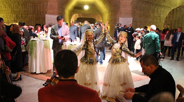 Kapadokya Kültür ve Sanat Merkezi'ndeki kabul törenine, şenliğe iştirak eden ülkelerden birer öğrenci ile ev sahipliği yapan kardeş öğrenciler katıldı.