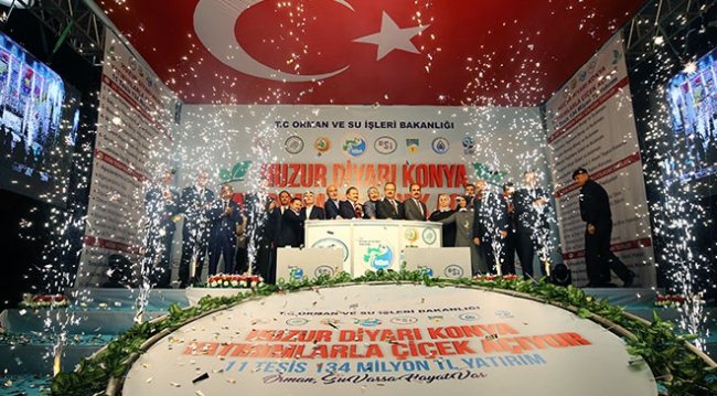 Orman ve Su İşleri Bakanı Veysel Eroğlu, Devlet Su İşleri (DSİ) Genel Müdürlüğü ve Orman Genel Müdürlüğü (OGM) tarafından Konya'da yapımına başlanan ve tamamlanan projelerin toplu temel atma ve açılış törenine katıldı.