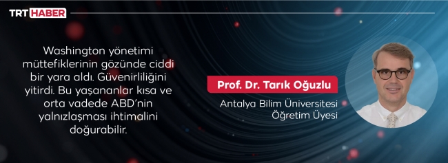 “Peki ABD şu an hangisine göre hareket ediyor?” diye soruyoruz… “Bu soruya net bir yanıt vermek mümkün değil” diyor Prof. Dr. Tarık Oğuzlu ve “Günlük siyasetin dinamiğine göre kararlar alıyorlar. Ancak mevcut durumun ABD’nin rakiplerinin ekmeğine yağ sürecek cinsten olduğunu söylemek gerekiyor. Her şeyden önce Washington yönetimi müttefiklerinin gözünde ciddi bir yara aldı. Güvenirliliğini yitirdi. Rusya ve Çin’in burada hemen ABD boşluğunu dolduracağını sanmıyorum. Onlar da en doğru zamanı bekleyecektir. Bu yaşananlar kısa ve orta vadede ABD’nin yalnızlaşması ihtimalini doğurabilir” cümleleriyle sözlerini tamamlıyor.