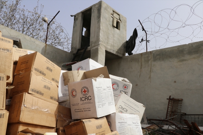 Afrin kurtarılmadan önce YPG/PKK tarafından boşaltılan hapishane içerisinde, teröristlerce kullanılan Kızılhaç ve Suriye Kızılayı'na ait çok sayıda yardım kolisi göze çarpıyor.
