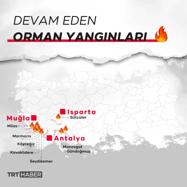 Dün akşam ise Isparta'nın Sütçüler ilçesinde yangın başlamıştı. Yazılı KanyonTabiat Parkı'nın kuzey tarafında başlayan yangın rüzgarın etkisi ile büyüdü. Çandır ve Şeyhler köyünde 15 ev yandı.