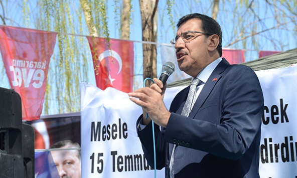 Tüfenkci, 15 Temmuz'u unutmadıklarını, darbe girişimi sırasında esnafın tanka, tüfeğe, bombalara karşı nasıl meydanları doldurduysa 16 Nisan'da da milli iradeye "evet" diyeceğini ifade etti.
