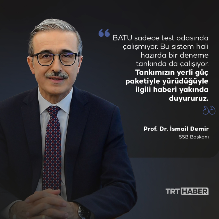BATU’nun testlerinin devam ettiğini yineliyor Demir ve “BATU sadece test odasında çalışmıyor. Bu sistem hali hazırda bir deneme tankında da çalışıyor. Tankımızın yerli güç paketiyle yürüdüğüyle ilgili haberi yakında duyururuz” diyerek aslında yeni nesil Altay tankı için önümüzdeki süreçte yeni gelişmelerin yolda olduğu müjdesini de veriyor.