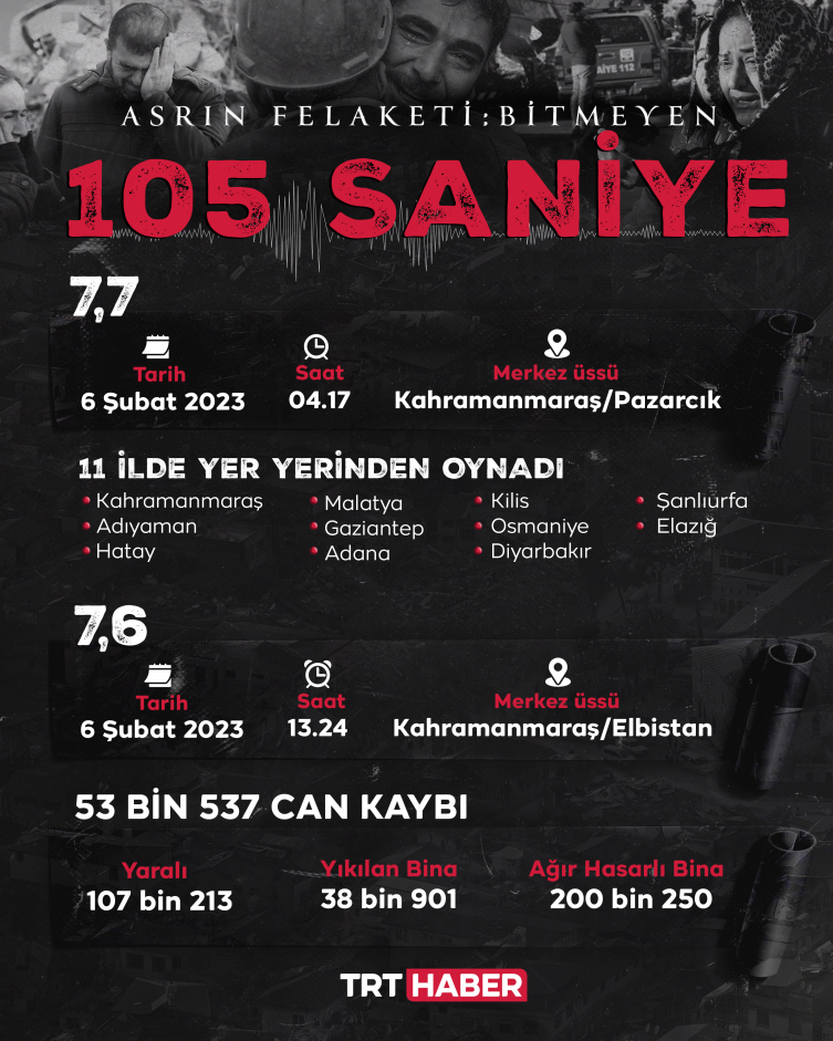 Türkiye, tarihinin en büyük felaketiyle karşı karşıyaydı, 7,7 ile sarsıldı. Depremin merkez üssü Kahramanmaraş'ın Pazarcık ilçesiydi.