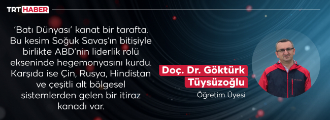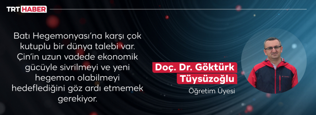 Yaşanan gelişmeleri ‘Batı Hegemonyası’na karşı çok kutuplu bir dünya talebi’ olarak niteliyor Doç. Dr. Tüysüzoğlu. Bu sürecin başrolünde Çin ve Rusya’nın bulunduğuna işaret edip, “Çin’in uzun vadede ekonomik gücüyle sivrilmeyi ve yeni hegemon olabilmeyi hedeflediğini göz ardı etmemek gerekiyor” görüşünü paylaşıyor.