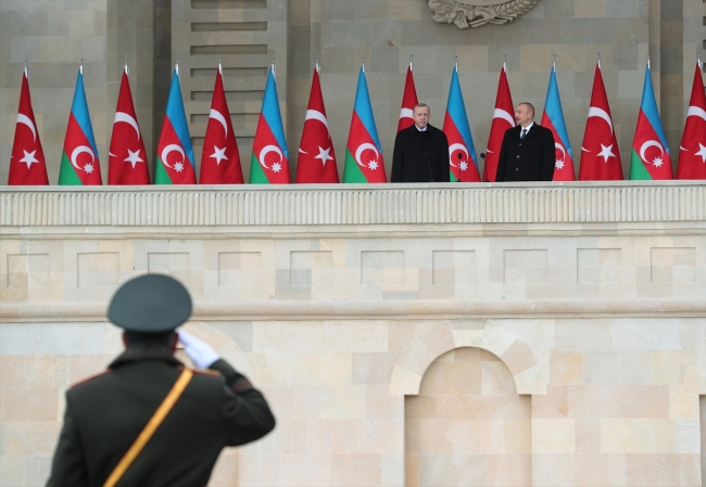 Erdoğan, ziyaretlerin ardından mevkidaşı İlham Aliyev ile birlikte Zafer Geçidi Töreni'ne katıldı.