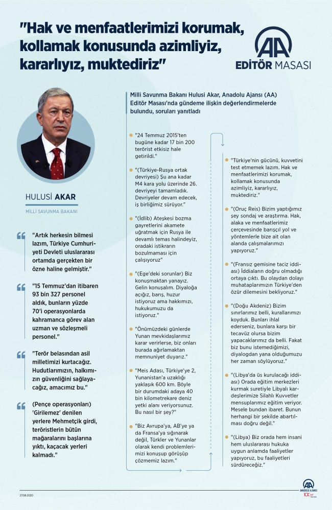 Milli Savunma Bakanı Akar, Anadolu Ajansı (AA) Editör Masası'nda soruları yanıtladı.