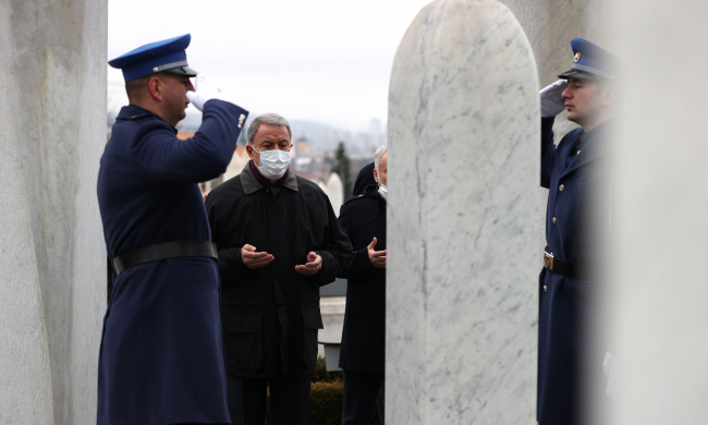 [Fotoğraf: AA]Bakan Akar, başkent Saraybosna'da, ilk olarak Bosna Hersek'in ilk Cumhurbaşkanı Aliya İzzetbegoviç'in kabrinin de bulunduğu Kovaçi Şehitliği'ni ziyaret etti.