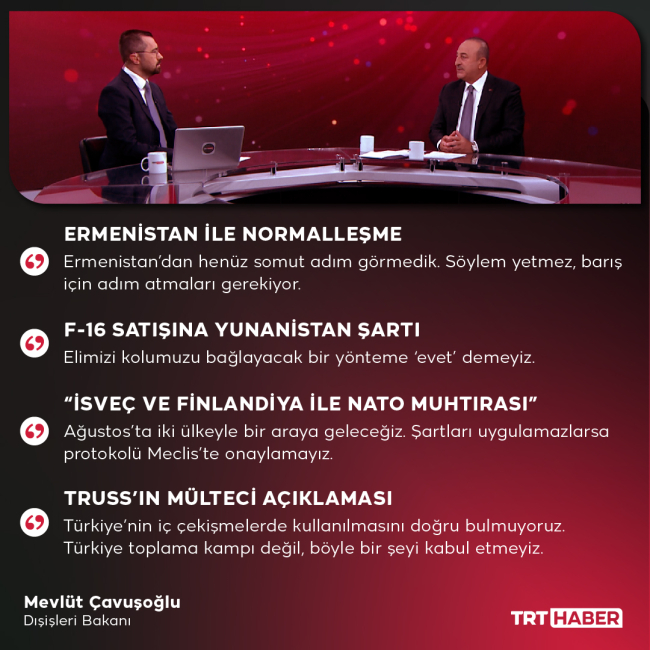 TRT Haber'in özel röportaj konuğu olan Dışişleri Bakanı Mevlüt Çavuşoğlu, gündeme ilişkin değerlendirmelerde bulundu.
