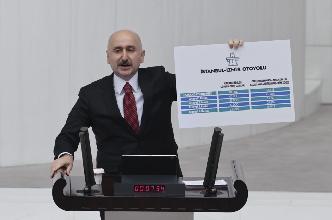 Kara yollarında bugüne kadar yapılan çalışmalar hakkında bilgi veren Karaismailoğlu, 2003 yılında 6 bin 101 kilometre olan bölünmüş yol uzunluğunu, 28 bin kilometreye çıkardıklarını, bu sayede yıllık 18,5 milyar TL tasarruf sağladıklarını söyledi.