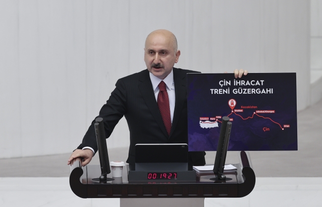 Ulaştırma ve Altyapı Bakanı Adil Karaismailoğlu, Meclis'te bütçe görüşmelerinde konuştu. Trenin, 8 bin 693 kilometre yol katederek, Çin'e ulaşacağını söyledi.