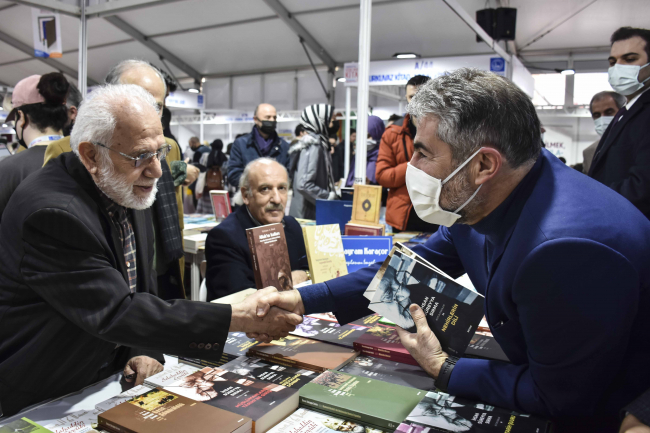 Beyan Yayınları standına da uğrayan Nebati, İslam tarihçisi ve yazar Prof. Dr. İhsan Süreyya Sırma ile sohbet etti. Sırma'nın kitaplarını alan Nebati, kitapları Sırma'ya imzalattı.