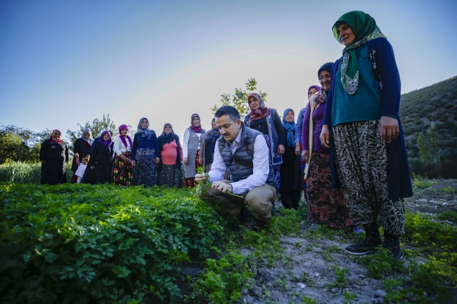 Çiftçilerle sohbet eden Pakdemirli, sağlanan desteklerle oluşturulan ekili alanları da gezerek bilgi aldı.