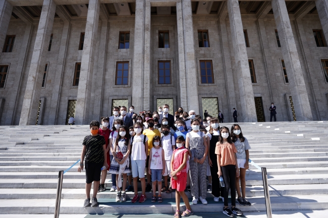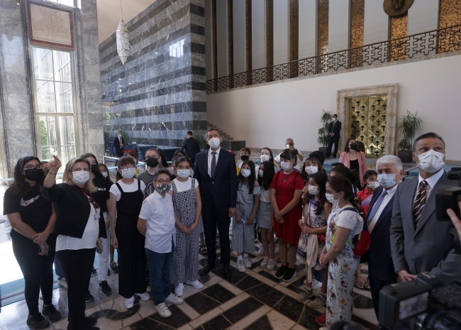 Milli Eğitim Bakanı Ziya Selçuk, beraberindeki öğrencilerle birlikte Türkiye Büyük Millet Meclisi'ndeydi.