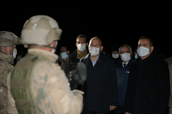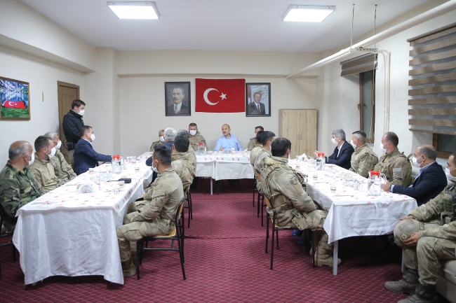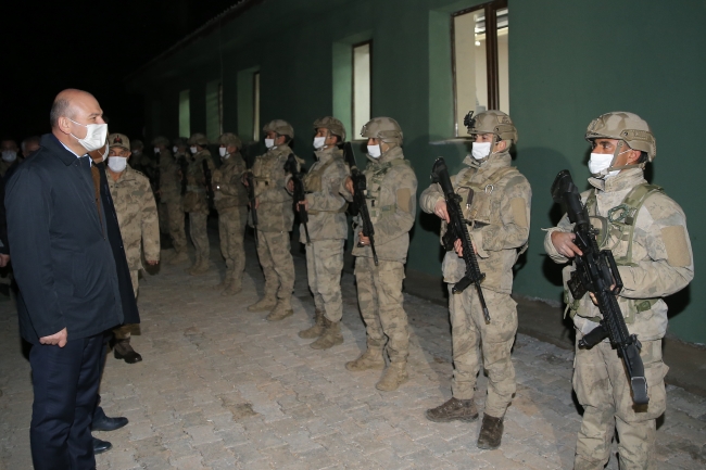 [Fotoğraf: AA]Üste görevli askerlerle selamlaşan Soylu, güvenlik güçleriyle bir araya gelerek sohbet etti.