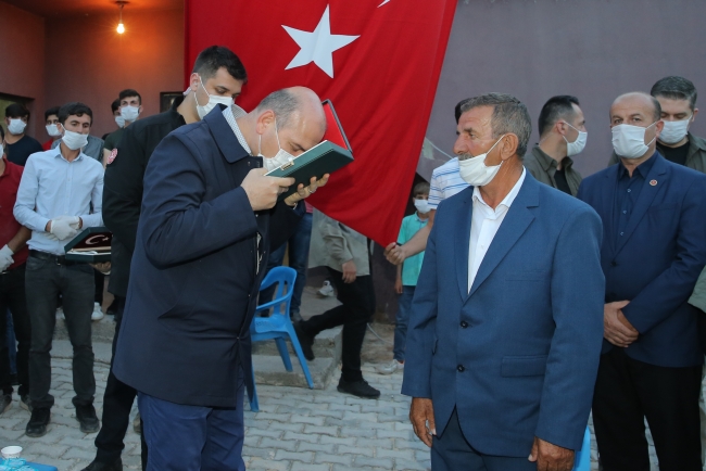 Bakan Soylu ziyaretlerinde şehitlerin ailelerine Kuran-ı Kerim ve Türk Bayrağı verdi.