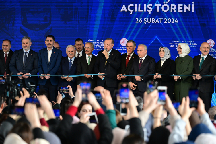 "Kazlıçeşme-Sirkeci Raylı Sistem ve Yaya Odaklı Yeni Nesil Ulaşım projemiz, bu yaklaşımımızın İstanbul'daki önemli örneklerinden biri olmuştur. Zatıalinize (Cumhurbaşkanı Erdoğan'a), Gayrettepe-Kağıthane Metro Hattımızın açılışını gerçekleştirdiğimiz gün; inşallah, 2024 yılının ilk çeyreğinde Kazlıçeşme-Sirkeci Raylı Sistem Hattı'nı, Bakırköy-Bahçelievler-Kirazlı Hattı'nı ve Halkalı-İstanbul Havalimanı Metro Hattı'nın Arnavutköy-İstanbul Havalimanı arasındaki kesimini açabileceğimizin sözünü vermiştim. Bugün Kazlıçeşme-Sirkeci arasındaki kesimin sizlerle beraber açılışını yapıyoruz. Şimdi sırada Bakırköy-Bahçelievler-Kirazlı Hattı ve Arnavutköy-İstanbul Havalimanı arasındaki 14 kilometrelik kesim var. İnşallah önümüzdeki ay içerisinde de onların açılışını yapacağız."