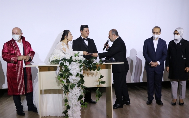 Bakan Varank, evlilik cüzdanını da geline teslim ederken "Mustafa bunu muhtemelen kaybedecektir. Buna en güzel sen sahip çıkacağın için sana teslim ediyoruz" dedi.