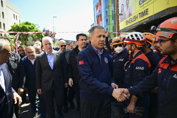 İçişleri Bakanı Ali Yerlikaya,Yerlikaya beraberindeki İstanbul Valisi Davut Gül ve AFAD Başkanı Okay Memiş ile 1 kişinin cansız bedeninin çıkarıldığı, 8 kişinin de yaralı kurtarıldığı çöken binanın enkaz alanında incelemelerde bulundu.