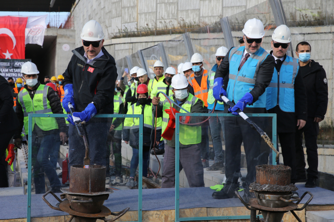 Bakan Karaismailoğlu, konuşmasının ardından Başakşehir Belediye Başkanı Yasin Kartoğlu ve AK Parti İstanbul İl Başkanı Osman Nuri Kabaktepe ile birlikte ray kaynağı yaptı.