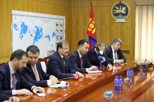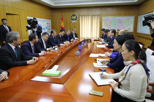 Başbakan Yardımcısı Hakan Çavuşoğlu resmi ziyareti için gittiği başkent Ulanbator'da, Moğolistan Başbakan Yardımcısı O. Enkhtuusin ile bir araya geldi.