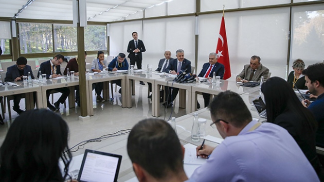 Yürüyerek Başbakanlık Resmi Konutu'ndan Basın Merkezi'ne gelen Yıldırım, gündeme ilişkin soruları yanıtladıktan sonra gazetecilerin haber yazdığı masalardan birisine oturdu. Binali Yıldırım, Başbakanlık muhabirleriyle bir süre sohbet etti.