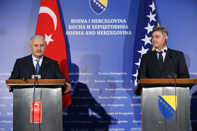 Başbakan Yıldırım, Bosna Hersek Bakanlar Konseyi Başkanı Denis Zvizdic ile Bosna Hersek Parlamentosu'nda baş başa ve heyetler arası görüşmelerin ardından ortak basın toplantısında değerlendirmelerde bulundu, gazetecilerin sorularını yanıtladı.