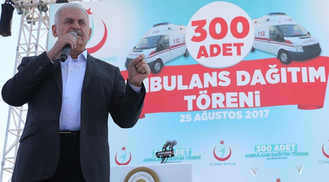 Burada konuşan Yıldırım, "Tabii ümit ediyoruz ve istiyoruz ki vatandaşımızın hiç ambulanslık işi olmasın ama hayatın gerçeklerinden de kaçamayız. 'Kullanmak ihtiyaç olmasın.' diyoruz ama ihtiyaç olduğunda da anında yanımızda olmasını hep bekliyoruz. Onun için sizler bu güzel araçlarla memleketimin her köşesinde 81 ilinde, 980 ilçesinde, 50 bin köyünde gece gündüz demeden vatandaşımıza hizmet edeceksiniz. Buna yürekten inanıyoruz." diye konuştu.