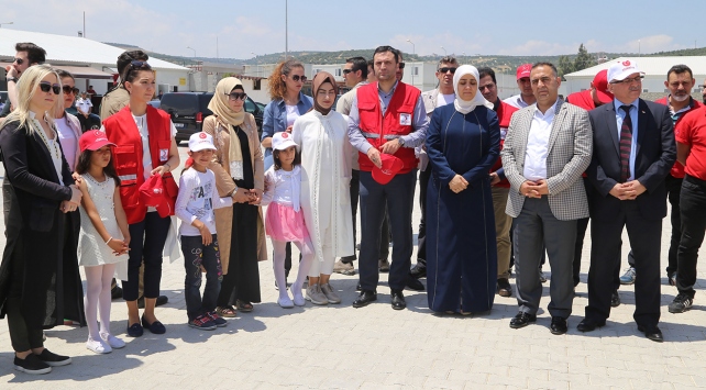 Yıldırım ailesi ilk olarak, kamp içerisinde bulunan kimi annesini, kimi babasını kaybetmiş 313 çocuk için yapılan Yetim Merkezi'nin açılış törenine katıldı.