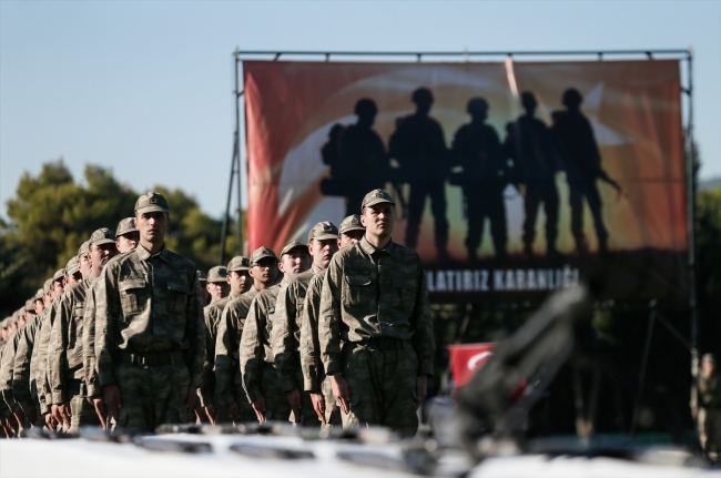 İzmir'deki Ulaştırma, Personel Okulu ve Eğitim Merkezi Komutanlığında temel eğitimlerini tamamlayan askerler için Tuğgeneral Süleyman Önder Kışlası'nda tören düzenlendi.