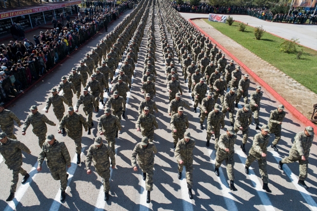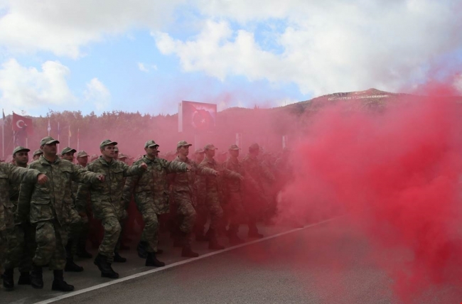 Manisa 1. Komando Eğitim ve Tugay Komutanlığında temel eğitimlerini tamamlayan 4 bin 768 asker için Albay Mehmet Arif Seyhun Kışlası'nda tören düzenlendi.