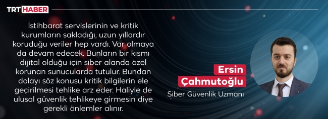 İstihbarat servislerinin ve kritik kurumların sakladığı, uzun yıllardır koruduğu veriler hep vardı. Var olmaya da devam edecek. Bunların bir kısmı dijital olduğu için siber alanda özel korunan sunucularda tutulur. Bundan dolayı söz konusu kritik bilgilerin ele geçirilmesi tehlike arz eder. Haliyle de ulusal güvenlik tehlikeye girmesin diye gerekli önlemler alınır.