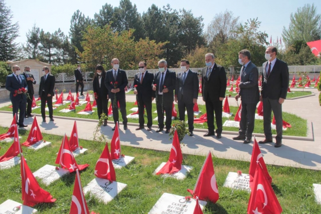 Daha sonra Afyonkarahisar Valisi Gökmen Çiçek ve beraberindekiler, Yüzbaşı Agah Efendi Şehitliği'ni ziyaret ederek, şehit mezarlarına karanfil bıraktı.