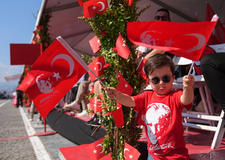 İzmir'deki tören, Sanayi ve Teknoloji Bakanı Mehmet Fatih Kacır, İzmir Valisi Süleyman Elban, Ege Ordusu ve Garnizon Komutanı Orgeneral İrfan Özsert ve İzmir Büyükşehir Belediye Başkanı Cemil Tugay'ın Cumhuriyet Meydanı'ndaki Atatürk Anıtı'na çelenk sunmasıyla başladı.