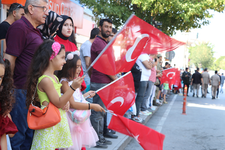 Daha sonra protokol üyeleri Prof. Dr. Necmettin Erbakan Bulvarı’nda devam eden törende, askeri araçla caddeden geçerek halkı selamladı. Günün anlam ve önemine ilişkin konuşmalar ve şiirlerin okunmasının ardından program geçit töreniyle sona erdi.