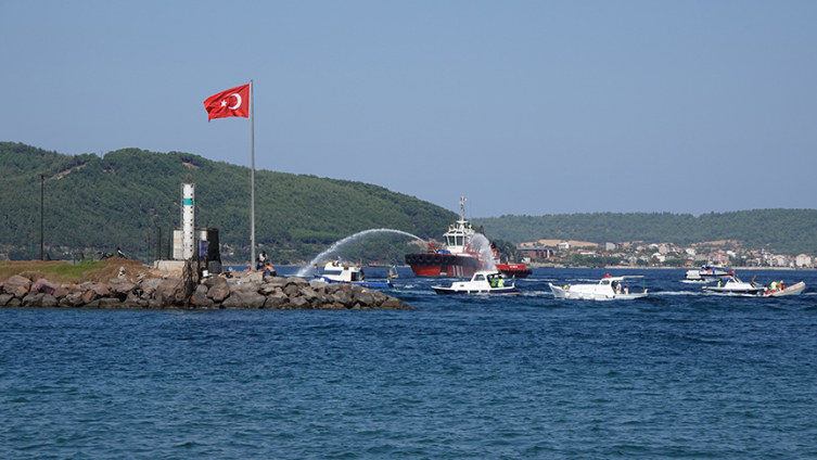 Kıyı Emniyeti Genel Müdürlüğüne ait römorkörler ve Sahil Güvenlik Komutanlığı botları, denizde su gösterisi yaptı.