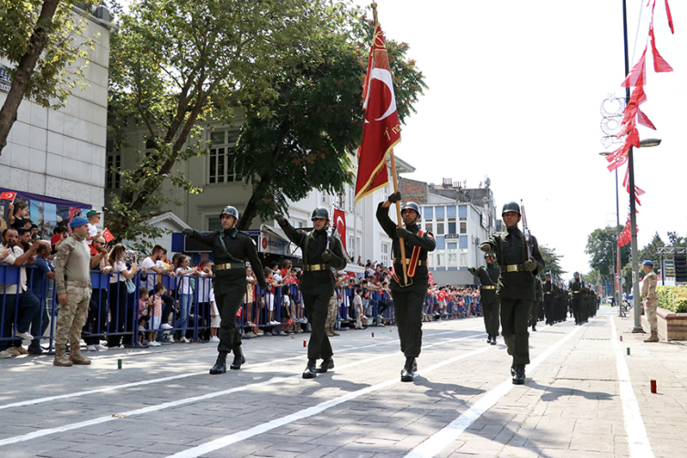 Atatürk Bulvarı'nda düzenlenen etkinlikte, saygı duruşunda bulunulması ve İstiklal Marşı'nın ardından Cumhurbaşkanı Recep Tayyip Erdoğan'ın Zafer Bayramı mesajı okundu. Törende, Vali Aksoy ve Belediye Başkanı Ünlüce askeri araçtan halkı selamladı.