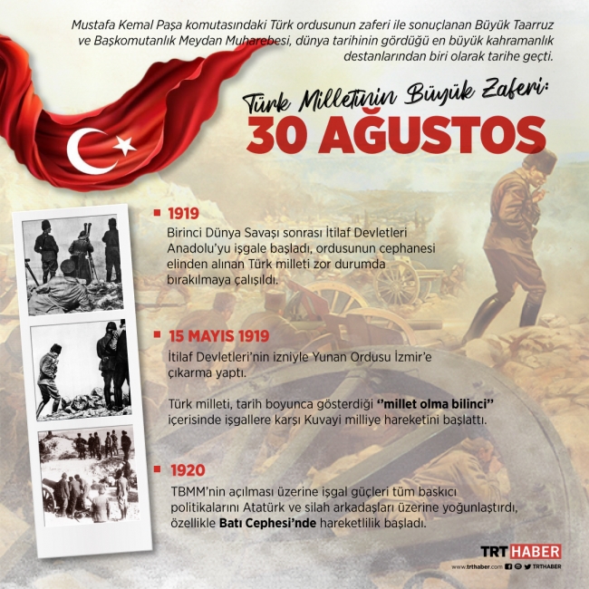 30 Ağustos 1922... Bir milletin küllerinden doğuşu, zaferin adı. Gazi Mustafa Kemal, isimsiz nice kahramanla o gün yeni nesillere bağımsızlık hediyesi sundu.