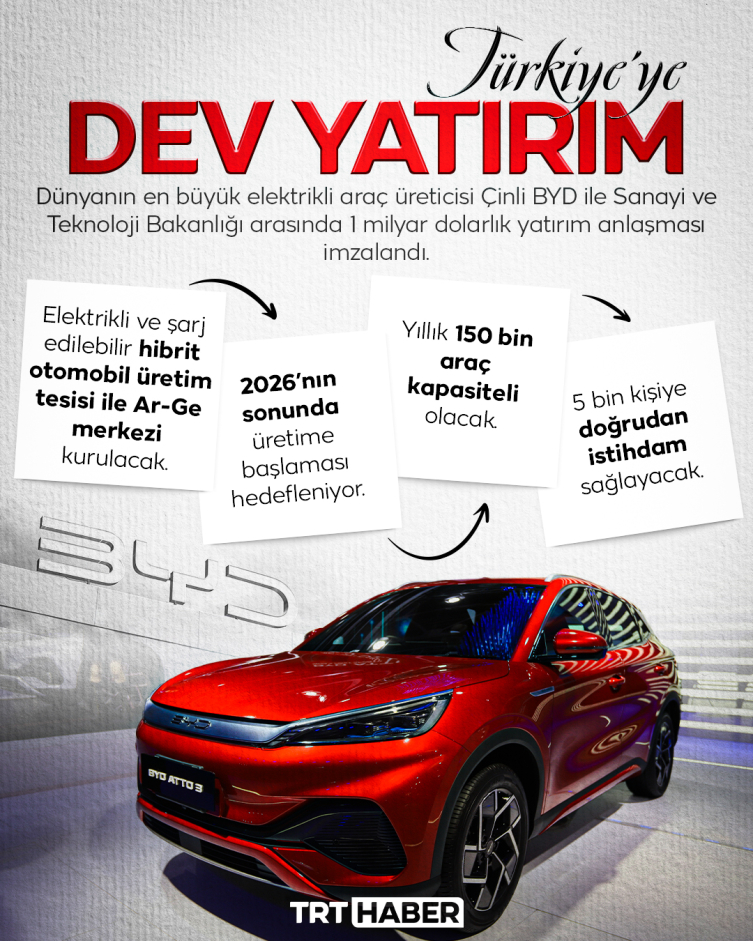 İşte tam da böyle bir ortamda Çin’in en büyük otomotiv markalarından biri olan BYD’nin Türkiye’de yatırım yapmasına ilişkin resmi imzaların atılması dikkate değer.