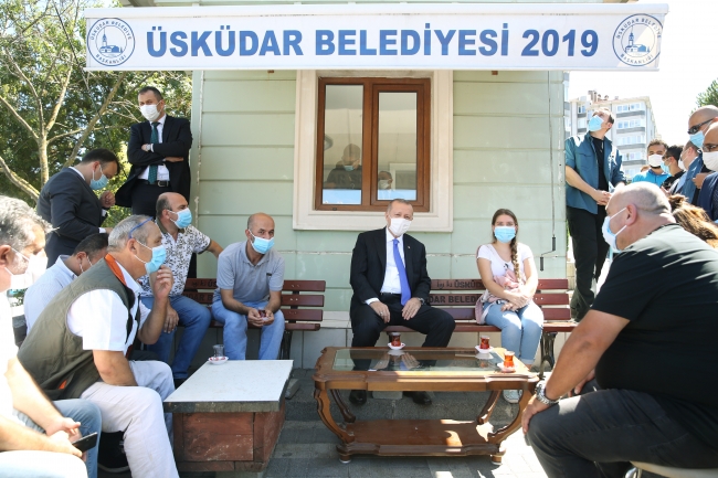 Daha sonra güzergahı üzerinde bulunan Üsküdar Nato taksi durağında makam aracını durduran Erdoğan, aracından inerek taksi durağına ziyarette bulundu.