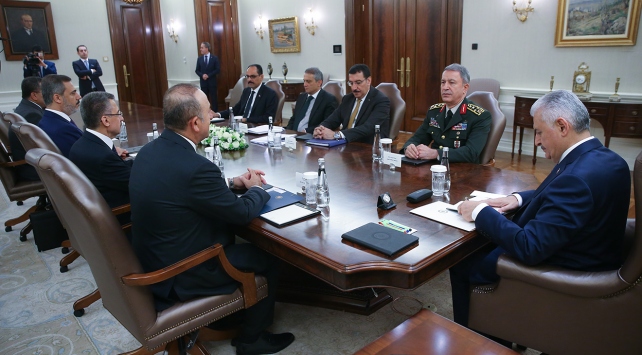Toplantıya Genelkurmay Başkanı Orgeneral Hulusi Akar, Dışişleri Bakanı Mevlüt Çavuşoğlu, Gümrük ve Ticaret Bakanı Bülent Tüfenkci, Cumhurbaşkanlığı Genel Sekreter Yardımcısı İbrahim Kalın, Başbakanlık Müsteşarı Fuat Oktay, MİT Müsteşarı Hakan Fidan ve Dışişleri Bakanlığı Müsteşarı Ümit Yalçın katıldı.